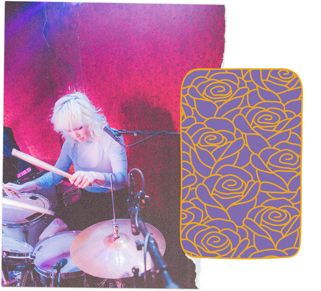 Me playing at Schokoladen in Berlin, Mitte, in front of the iconic rose wallpaper