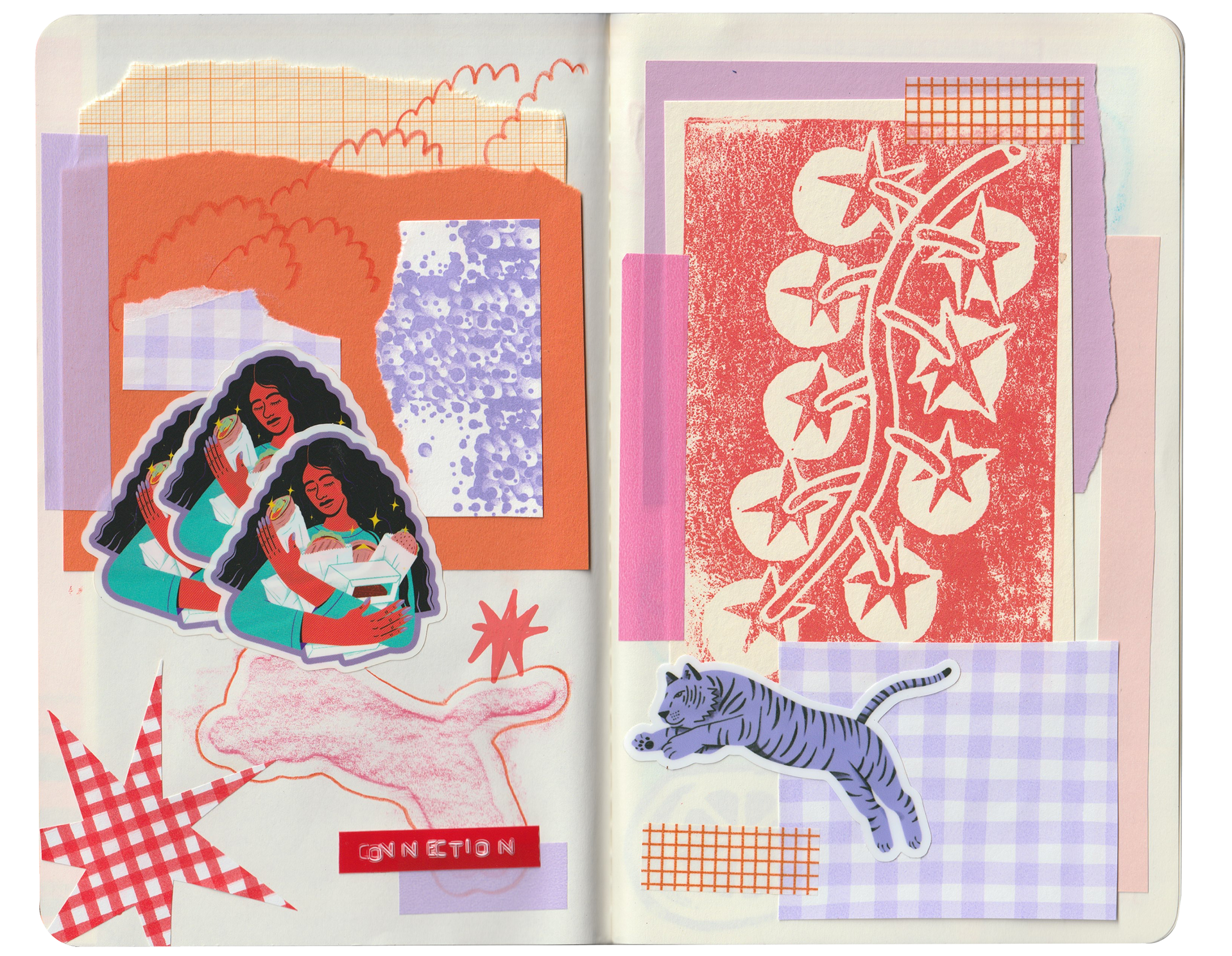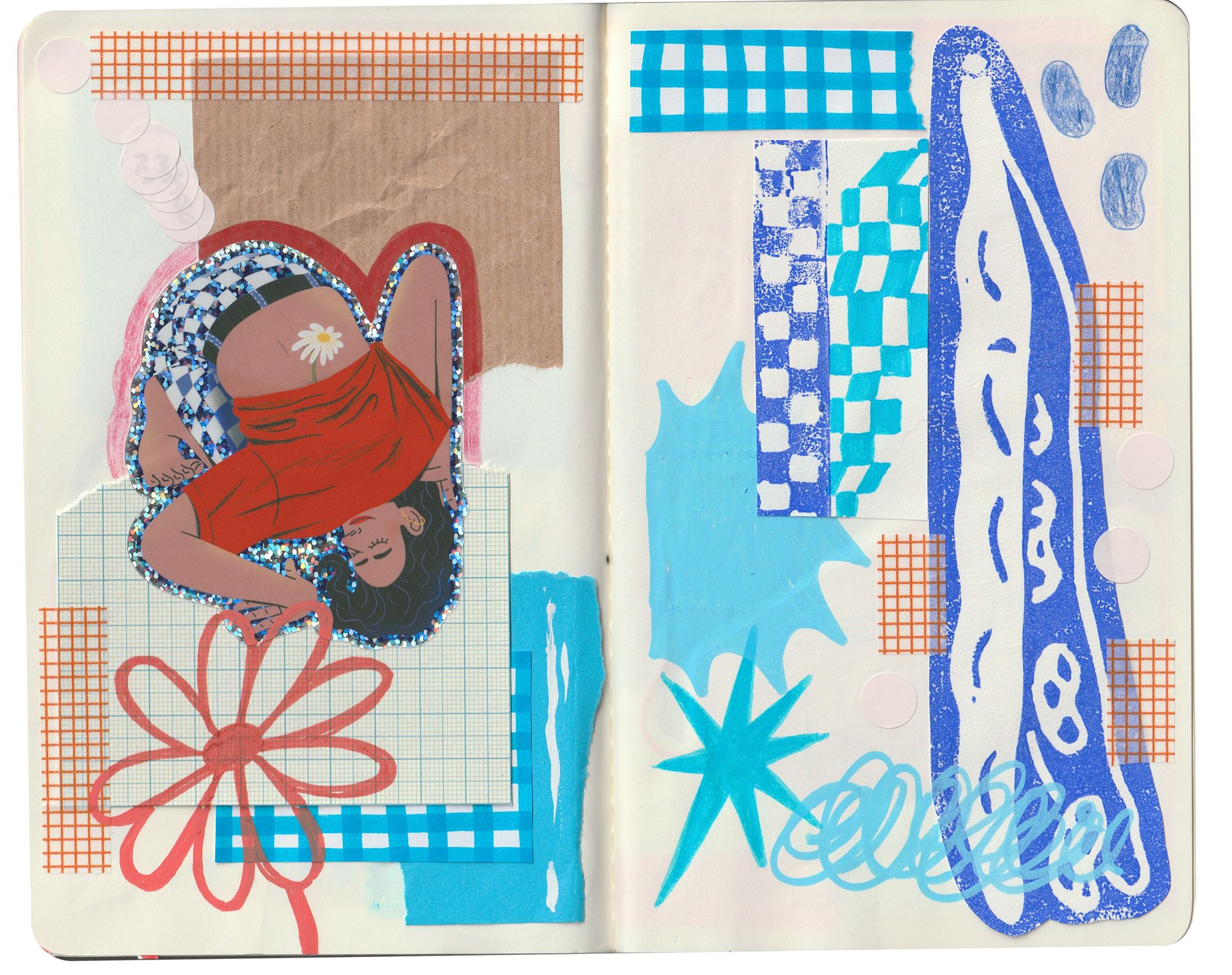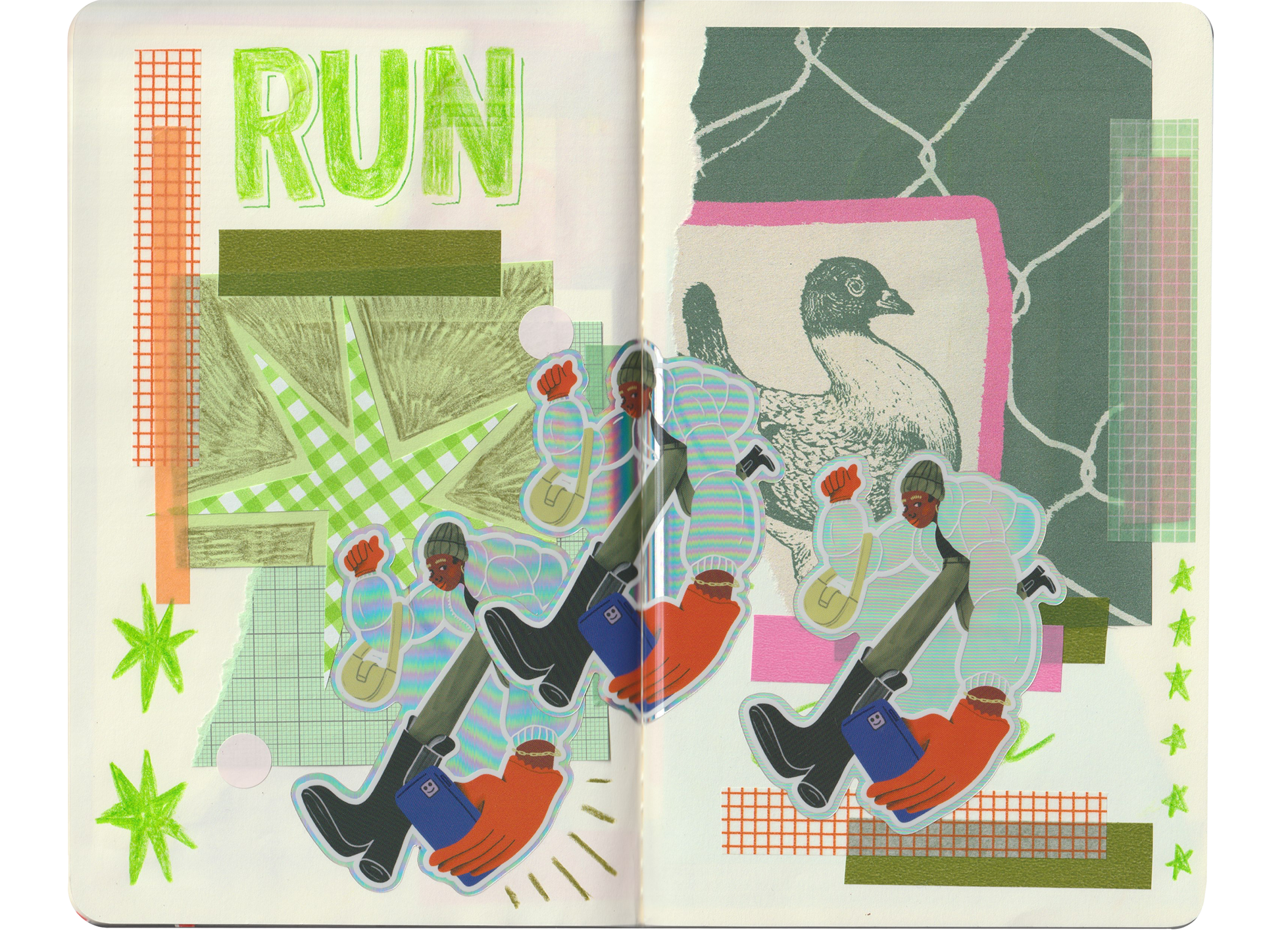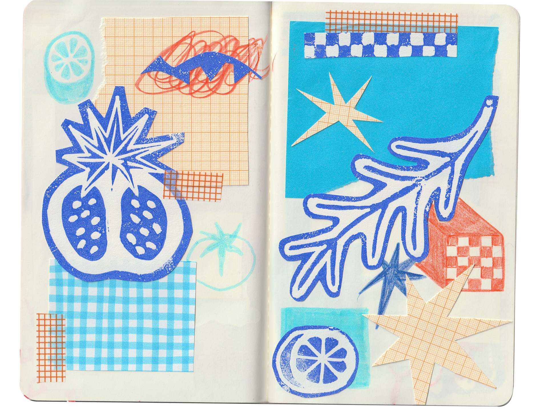 Experimenting with paper, tape, stickers of my own design and lino misprints