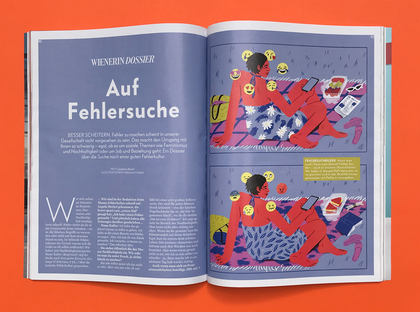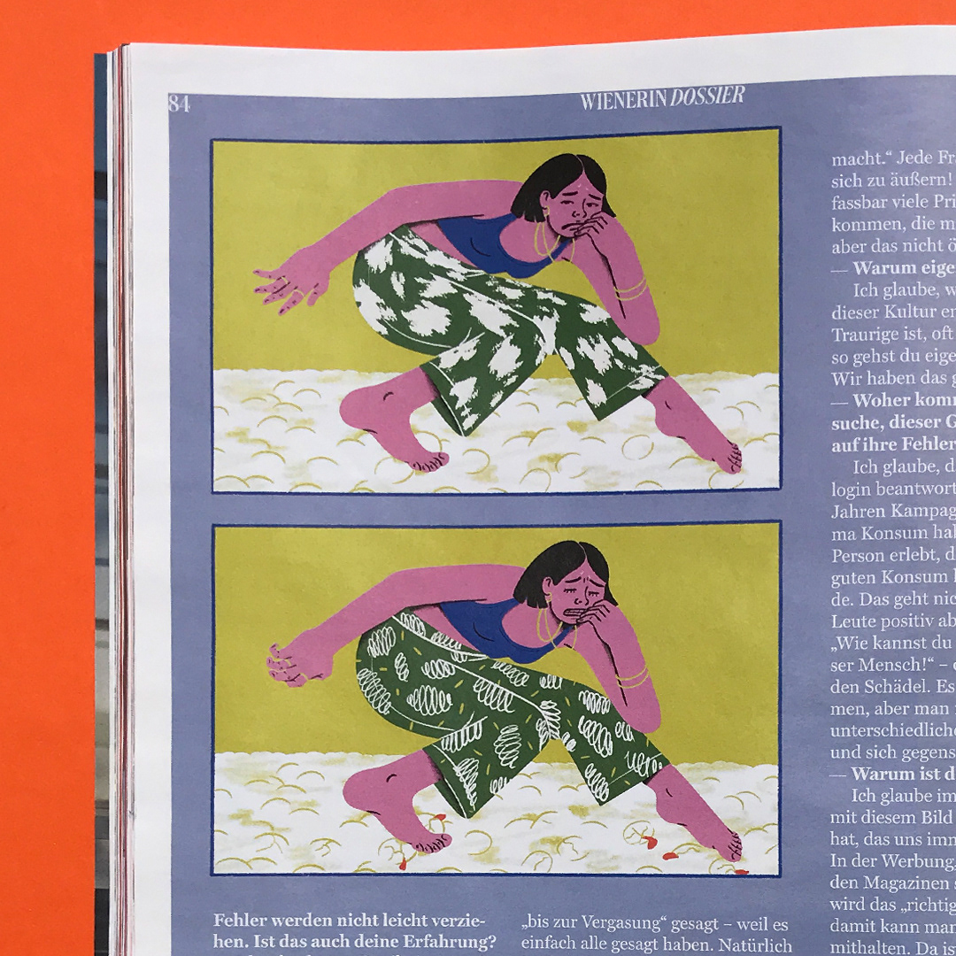 Article about mistakes. Every illustration has two versions with different little things to find.